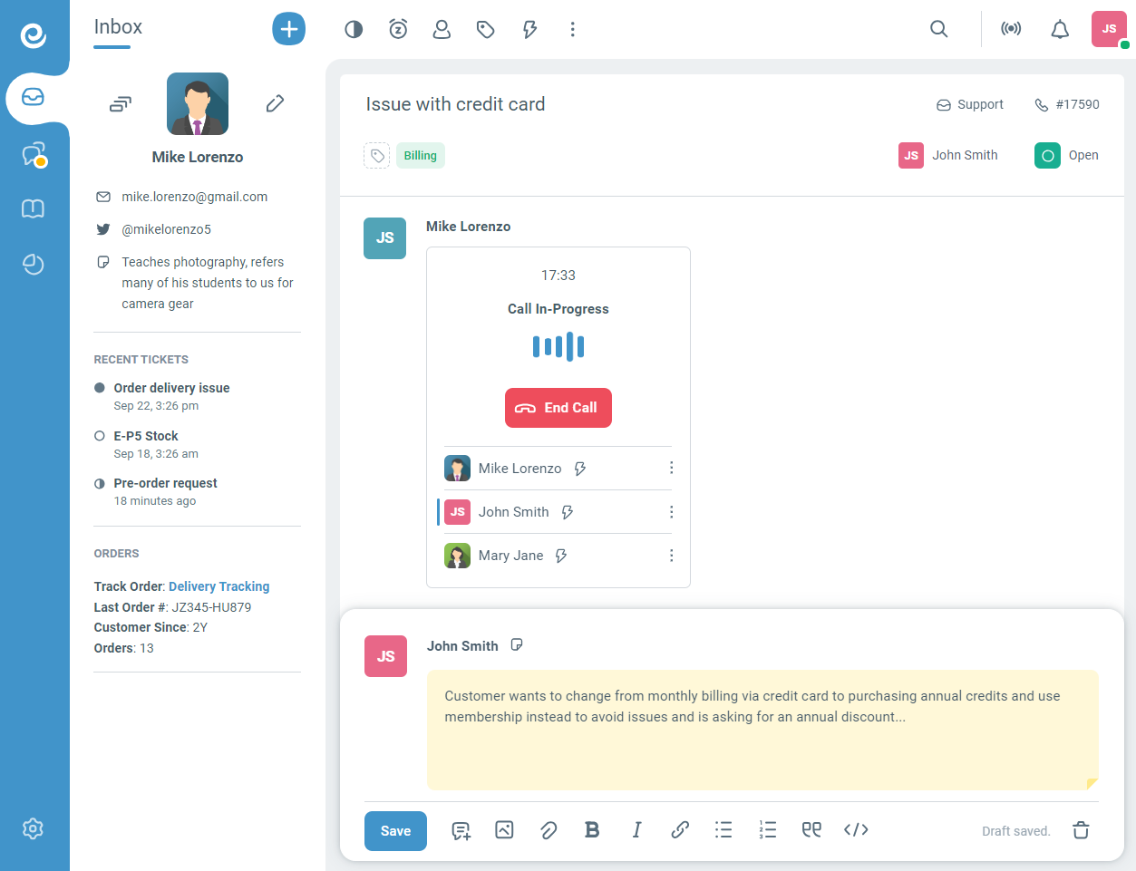 - Automatic call ticket generation and call recordings.
