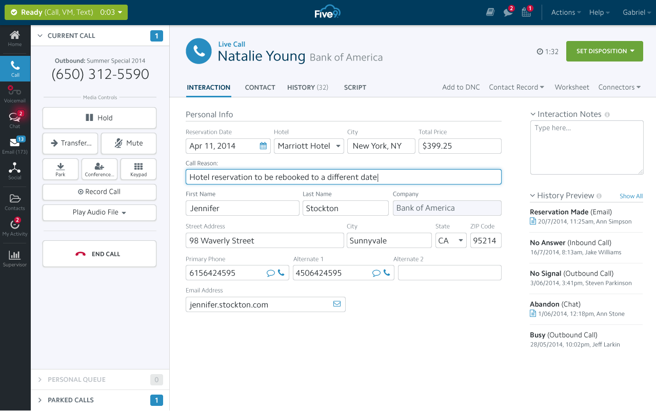 Five9 showcases a simple user interface combined with logically structured tabs, allowing users quick access to essential information such as call time, among other vital data. The software provides highly customizable reports giving managers to get a broad look into vast amounts of data, from handle time, after-call work, hold time, idle time and more.