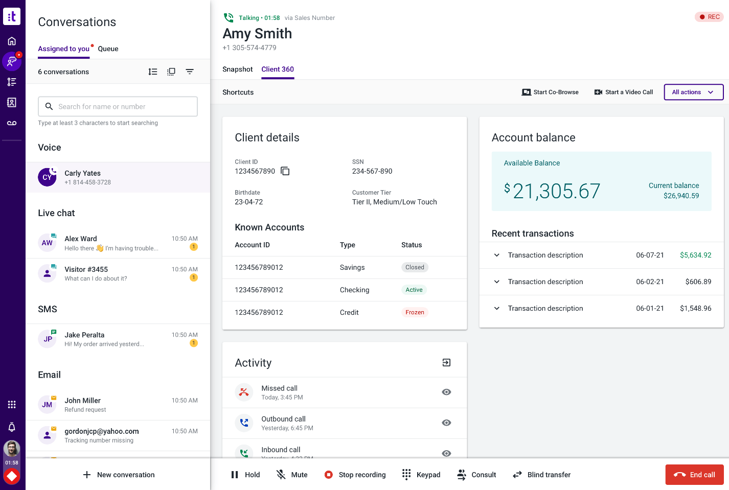 - Unified communication platform with voice calling & digital channels.